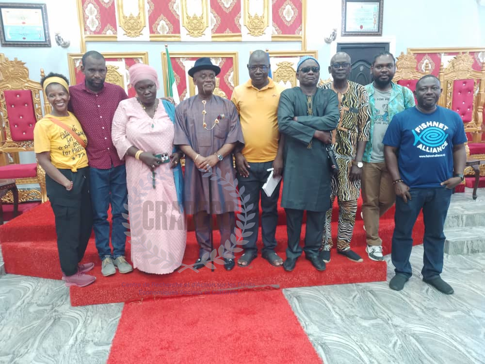 La délégation du CRADESC a également rencontré des associations de femmes et des ONG locales, avant d’être reçue par le Roi du royaume d’Eleme, dans l’État de Rivers. Celui-ci a encouragé la poursuite des actions de sensibilisation sur les droits des communautés, notamment le respect du consentement préalable, et sur la nécessité de renforcer la lutte pour la préservation de l’environnement du Delta du Saloum.